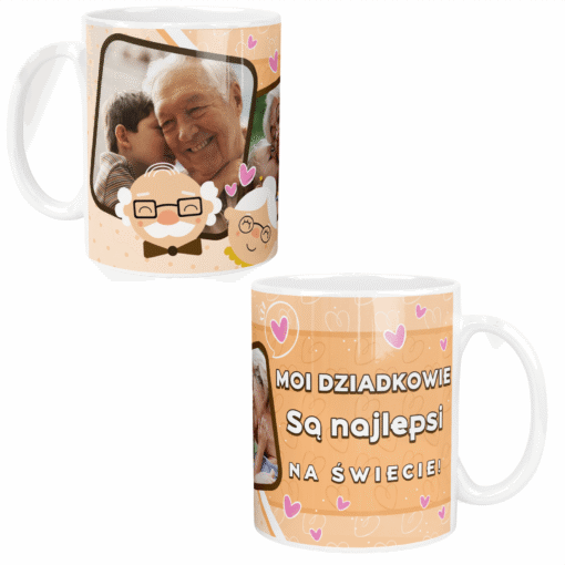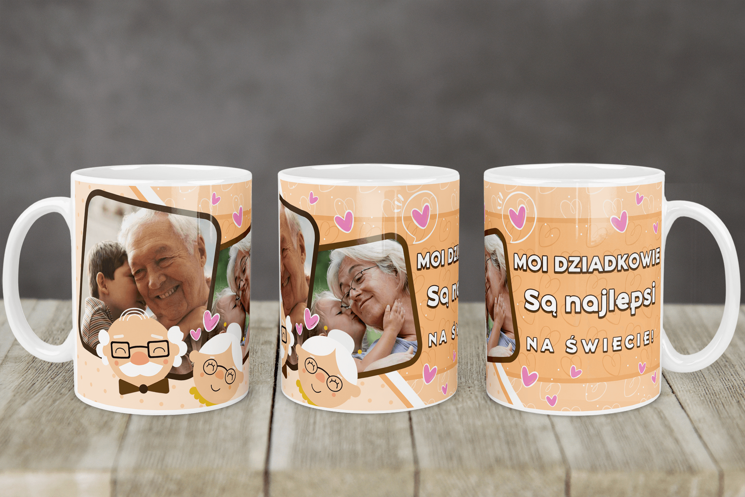 Wyjątkowy prezent dla ukochanych dziadków! Na tym kubku możemy umieścić zdjęcia dziadków, które nam wyślesz, oraz wzruszający napis: „Moi dziadkowie są najlepsi na świecie.” 💖