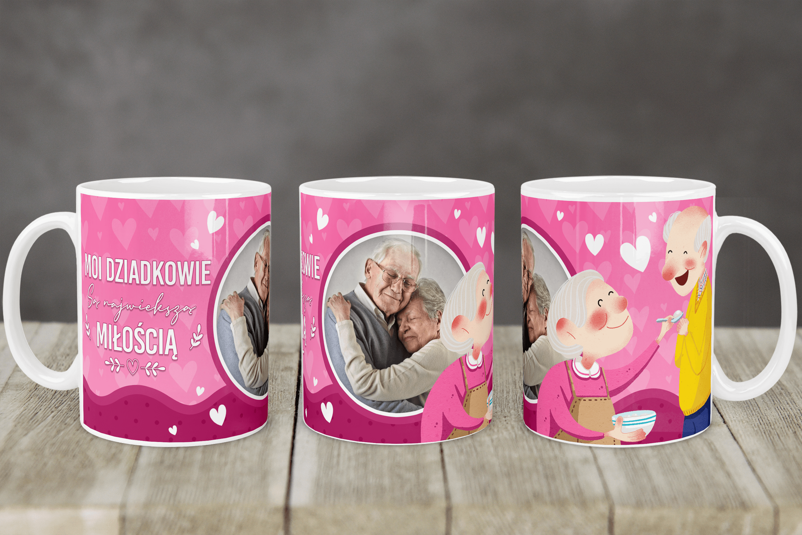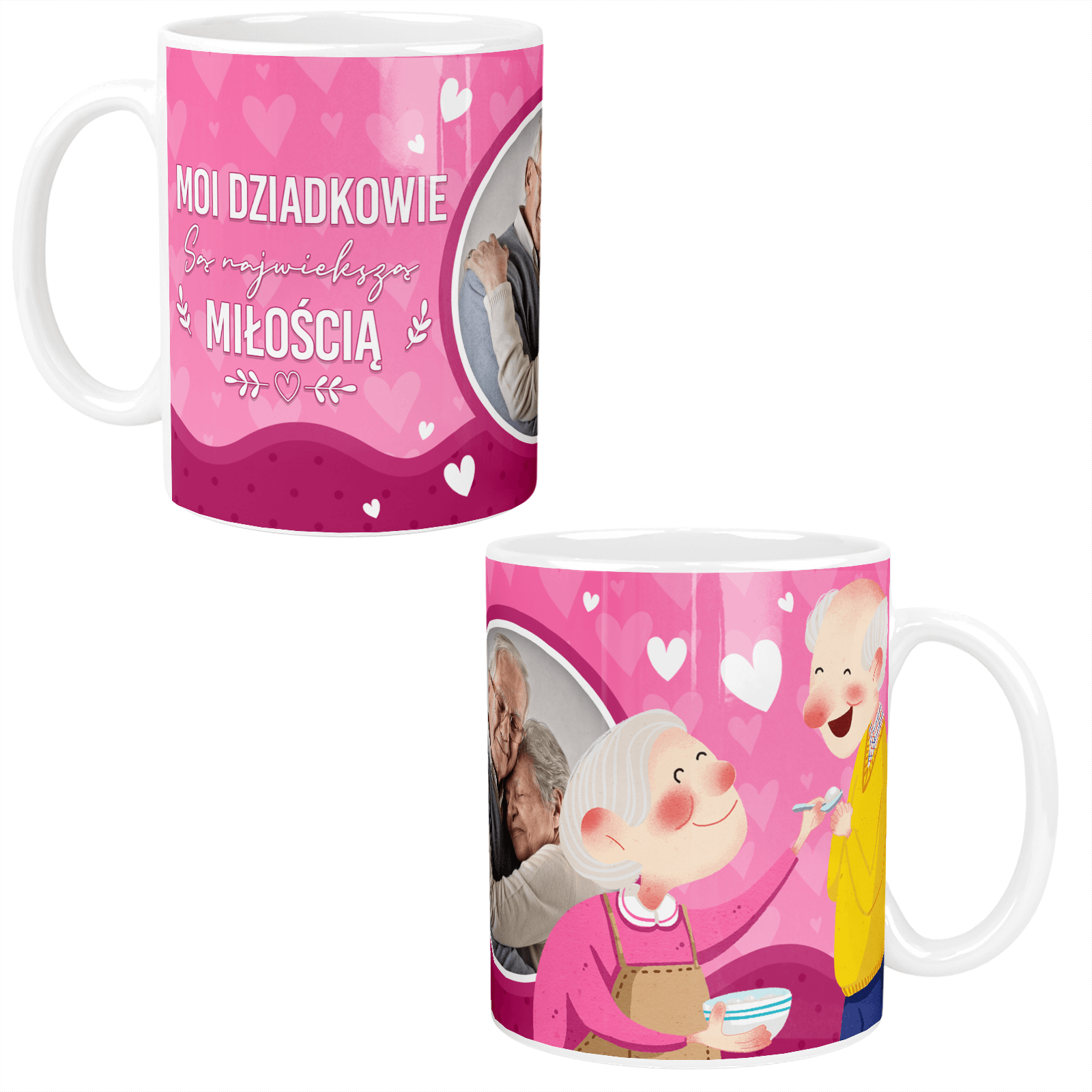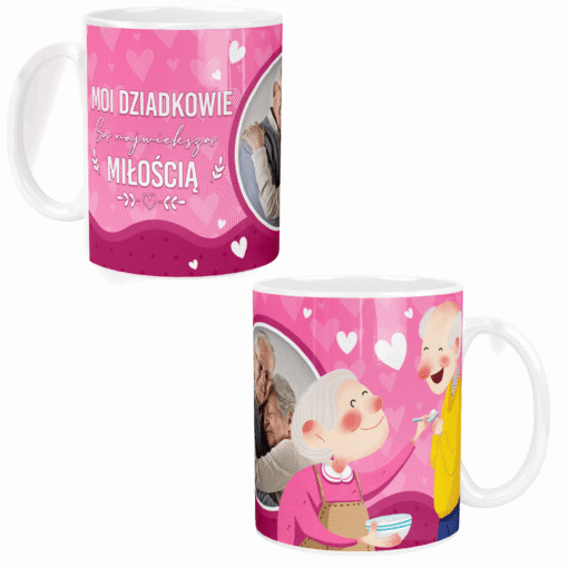 Wyjątkowy prezent dla ukochanych dziadków! Na tym kubku możemy umieścić zdjęcia dziadków, które nam wyślesz, oraz wzruszający napis: „Moi dziadkowie są największą miłością.” 💖