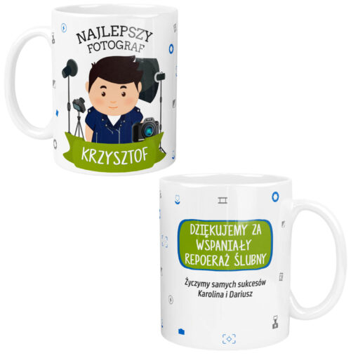 Zamówienie personalizowanego kubka to świetny sposób, aby podziękować fotografowi za jego pracę. Kubek będzie codzienną pamiątką jego talentu i umiejętności.