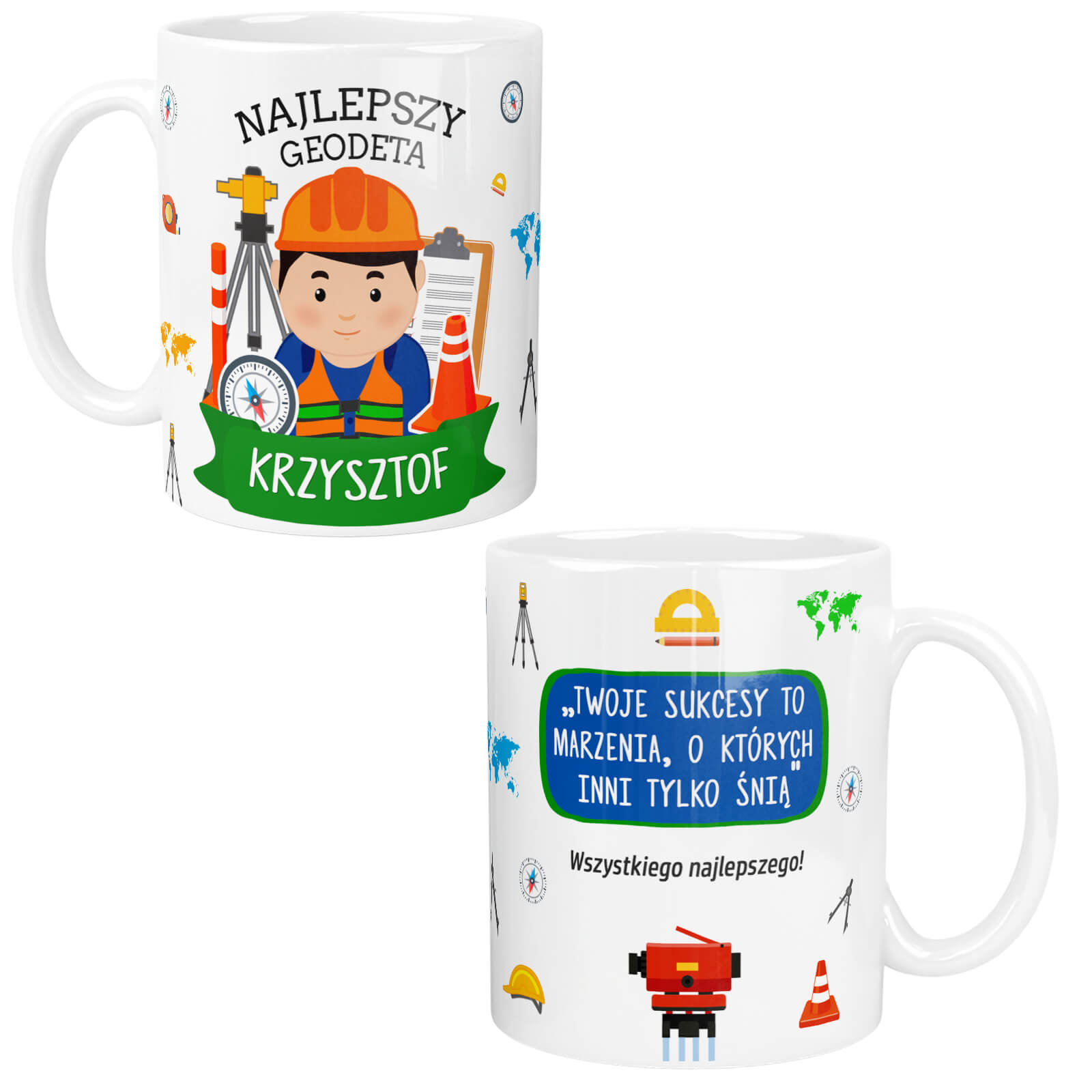 Personalizowany kubek dla geodeta to doskonały pomysł na prezent dla osoby pracującej w tej branży.