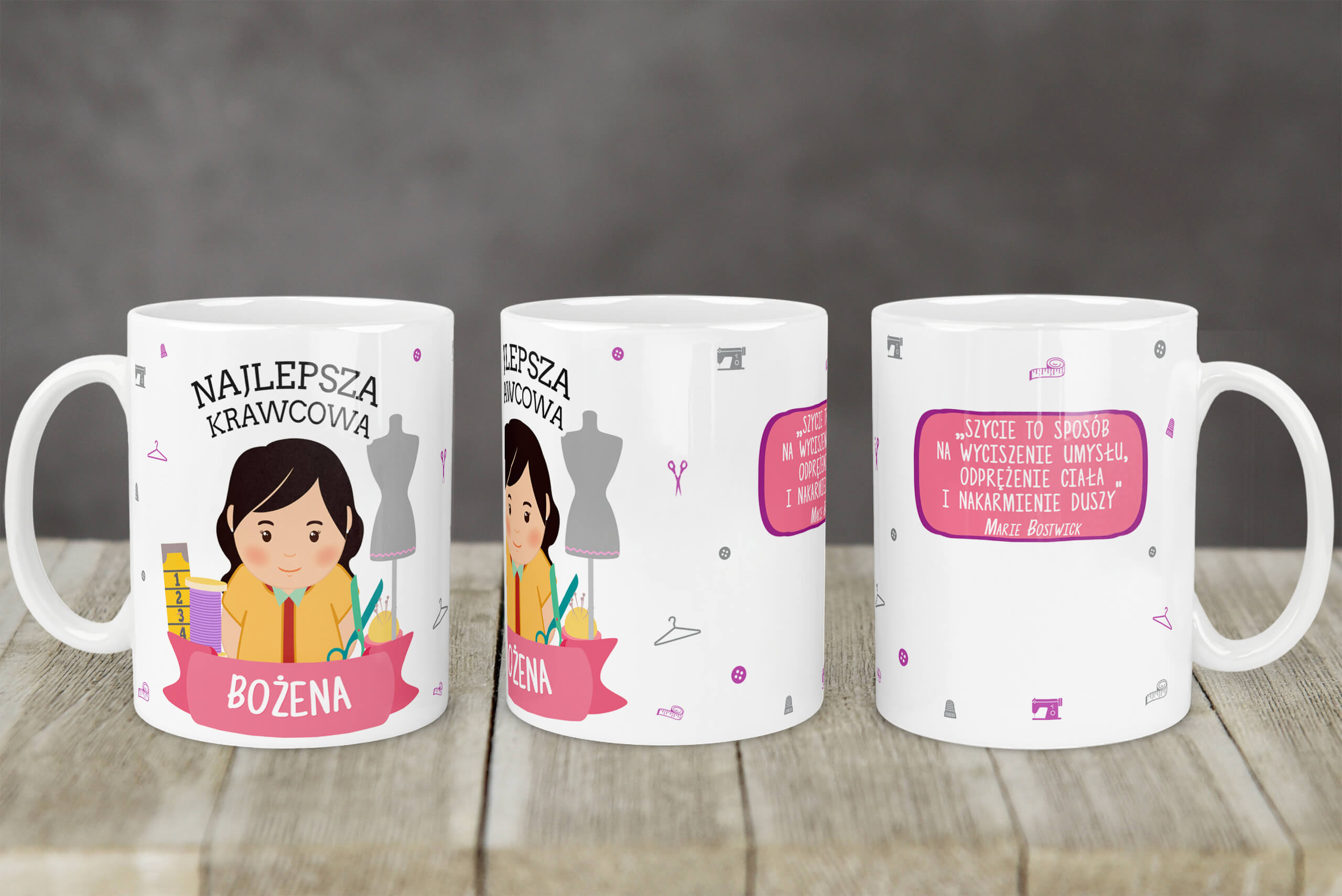 - Nagłówek: „NAJLEPSZA KRAWCOWA”