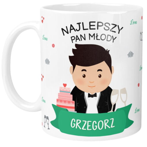 Prezentujemy nasz kubek, który oddaje hołd miłości i entuzjazmowi pana młodego wobec nadchodzącego małżeństwa.