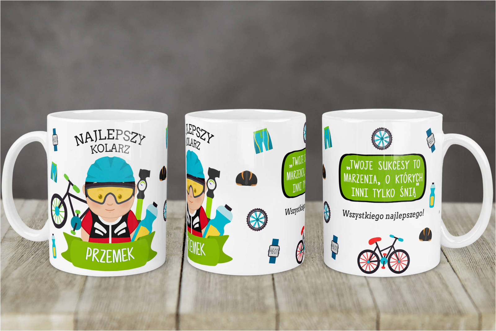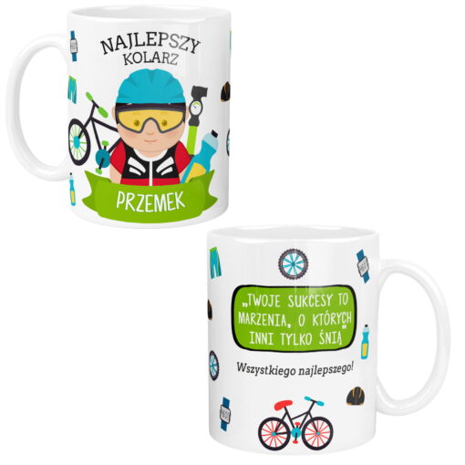Kubek to także doskonały prezent dla rowerzysty. To symboliczny wyraz zrozumienia i podziękowania za jego pasję do jazdy na rowerze oraz za to, że dzięki temu ruchowi dba o zdrowie i radość.