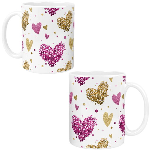 Kubek z Grafiką w Brokatowe Serca