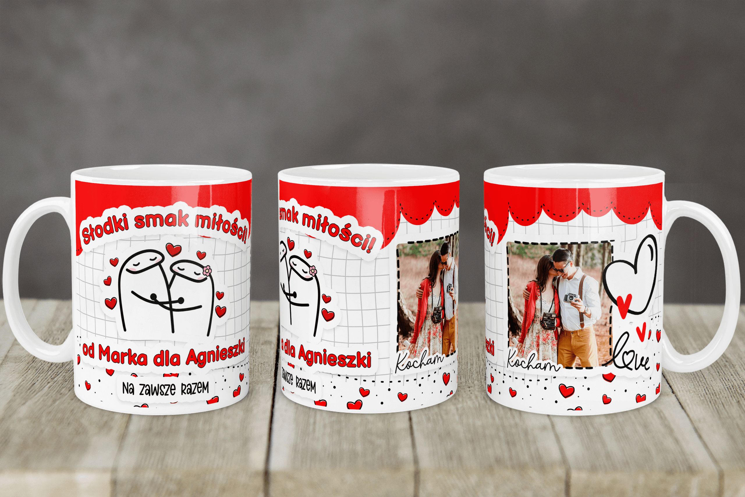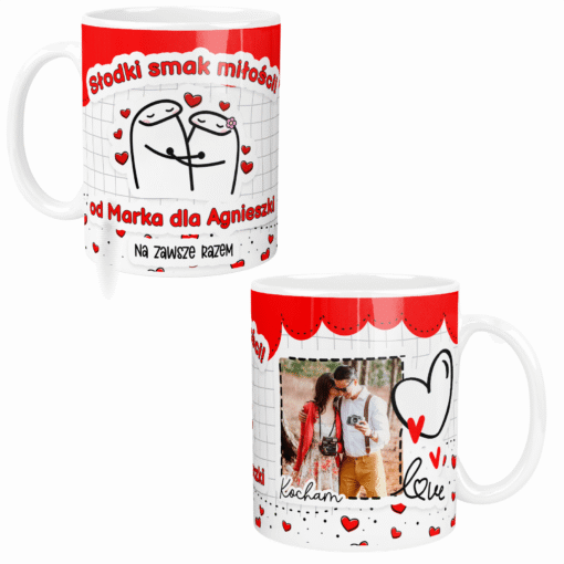 Wyraź swoją miłość w wyjątkowy sposób dzięki temu kubkowi! 📸 Dodajemy do niego Twoje ulubione wspólne zdjęcie, tworząc niezapomniany prezent na Walentynki.